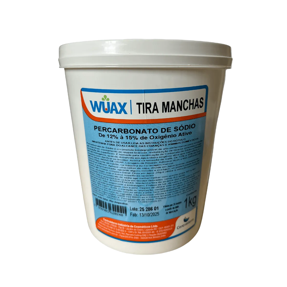 É um agente de limpeza poderoso com oxigênio ativo, ideal para branquear roupas e remover manchas difíceis sem cloro. Biodegradável e seguro para tecidos brancos e coloridos resistentes, ele atua melhor quando dissolvido em água quente (40° a 60° ).
